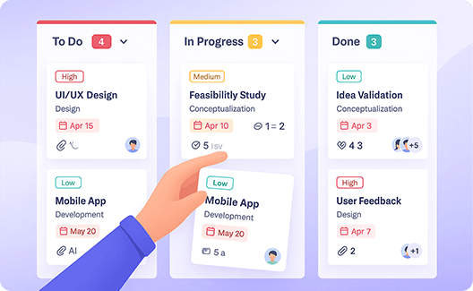 Create, assign, prioritize — everything is one click away.